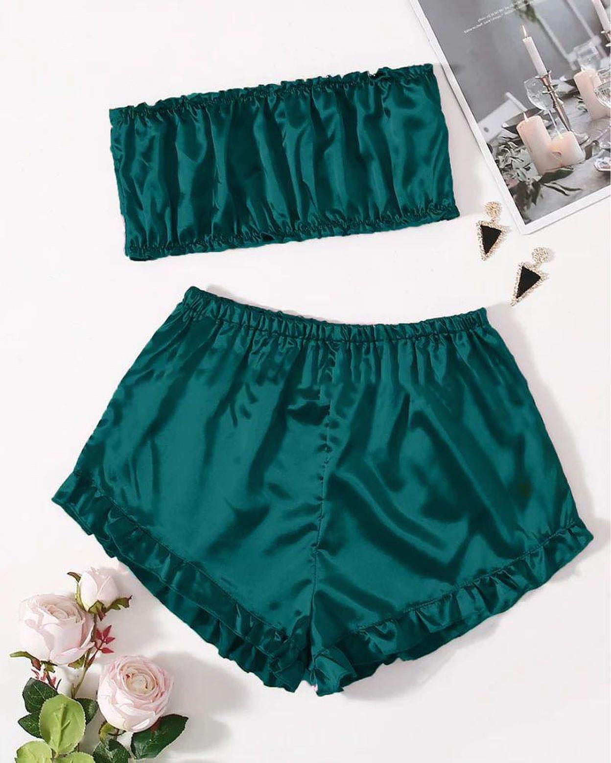 Cc SATIN FRILL TRIM TUBE TOP & SHORTS PJ SET CHK # P48