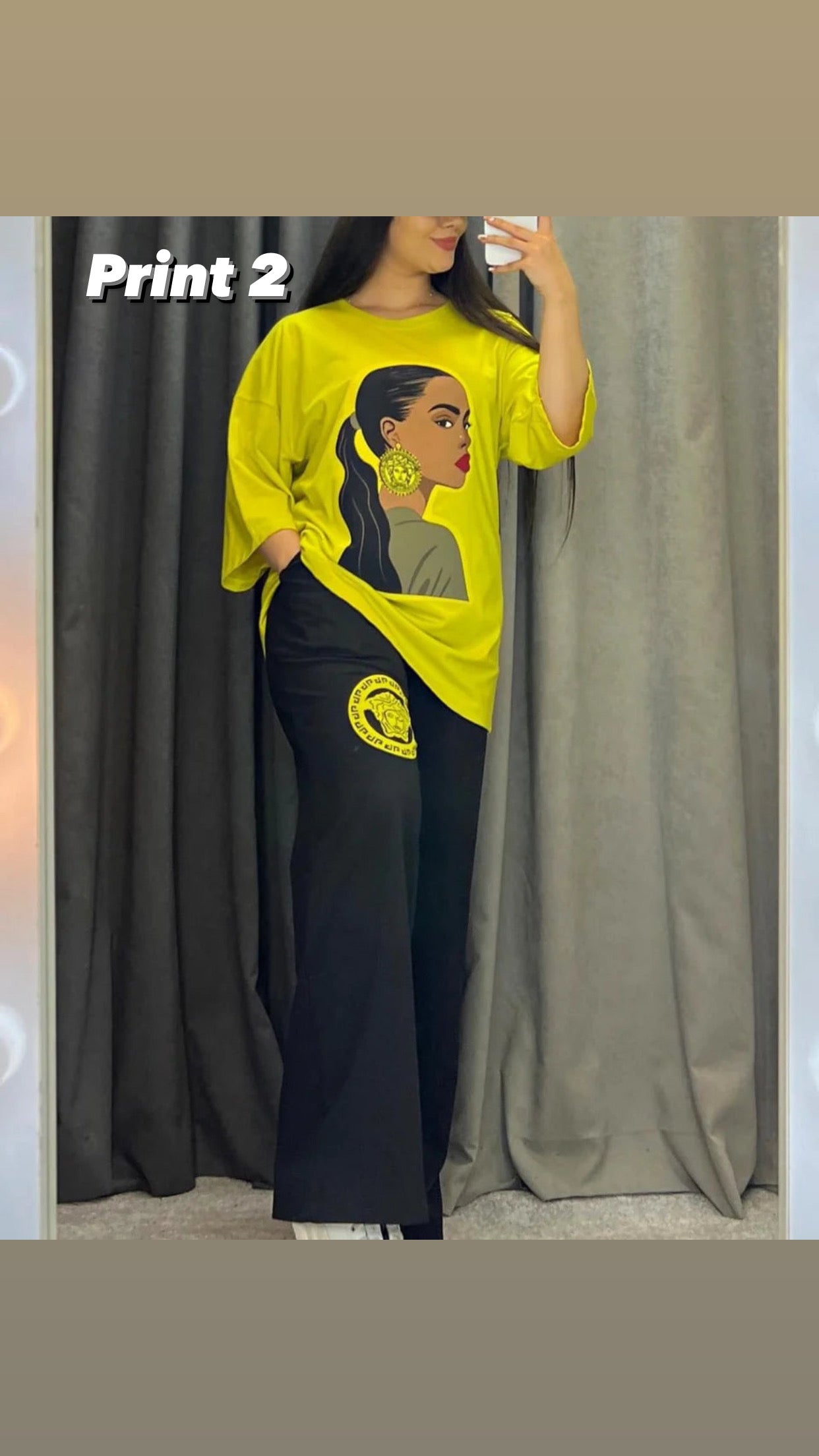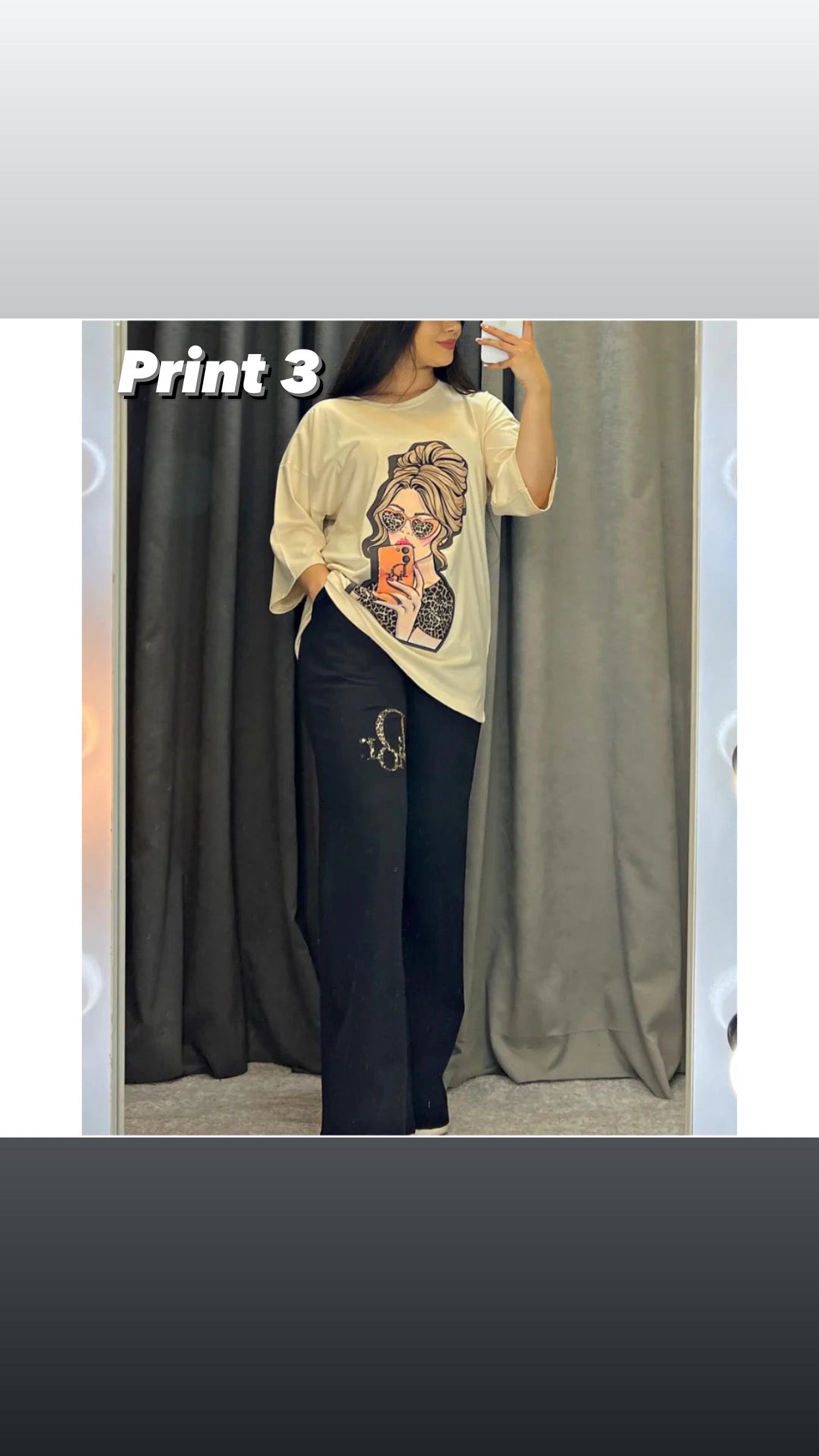Chic Comfort: Enjoy ultimate comfort with our Printed Drop-Shoulder Tee and Trousers, featuring a relaxed fit and eye-catching designs.