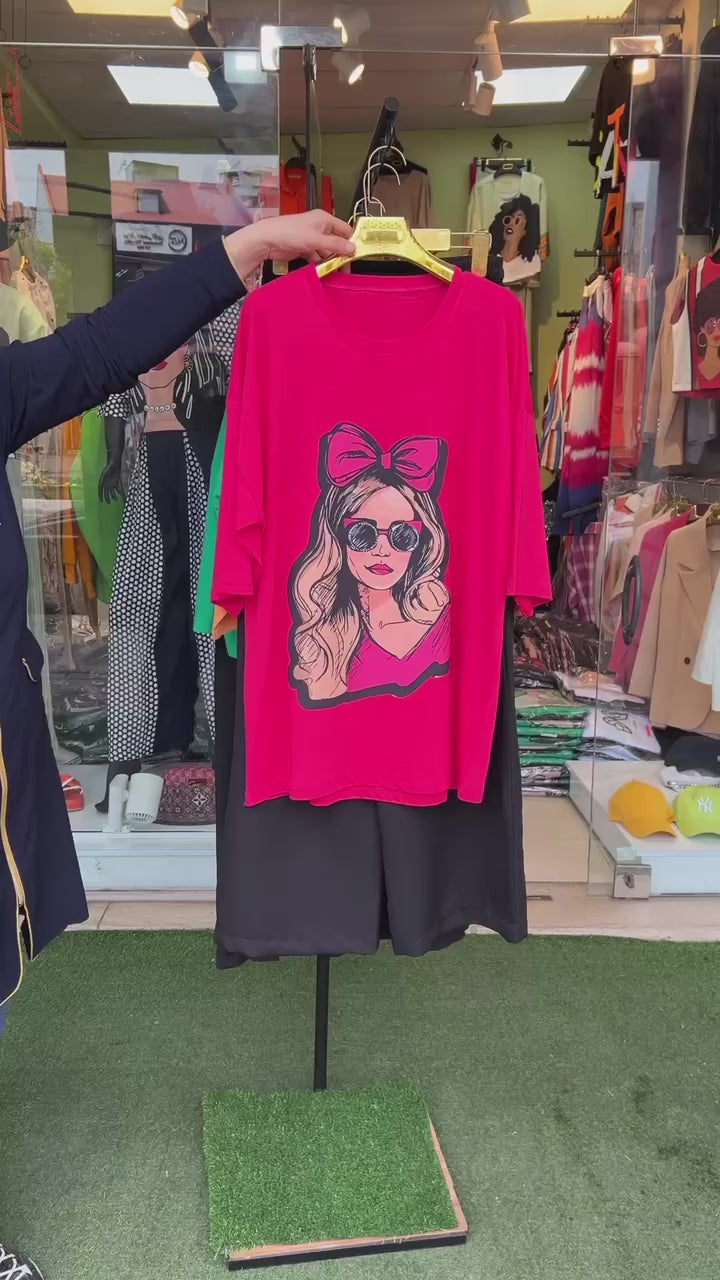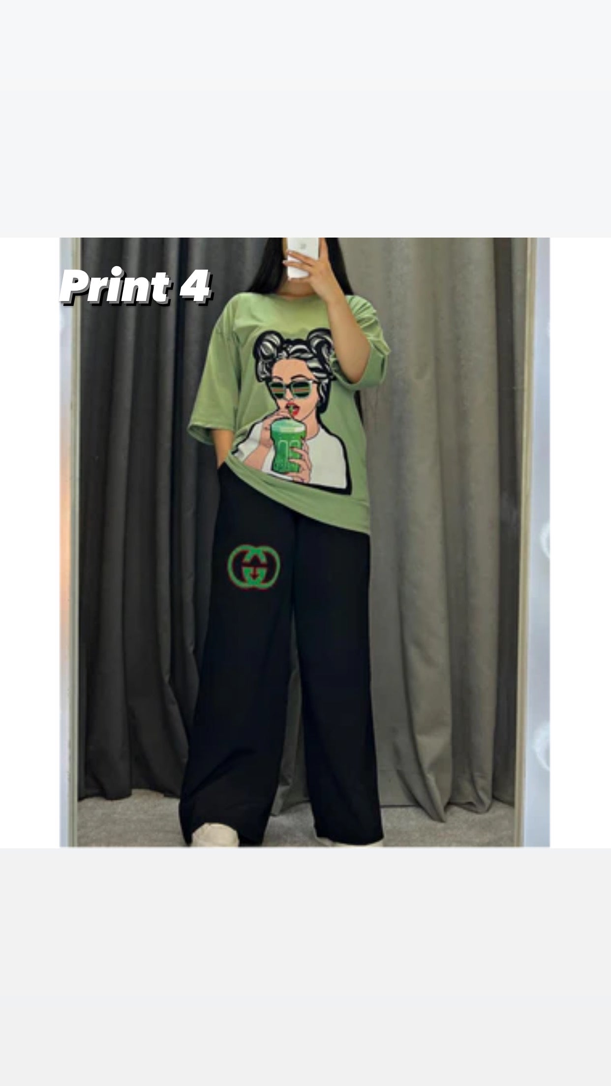 Casual Cool: Make a statement with our Printed Drop-Shoulder Tee Trousers set, perfect for adding a trendy twist to your everyday wardrobe.