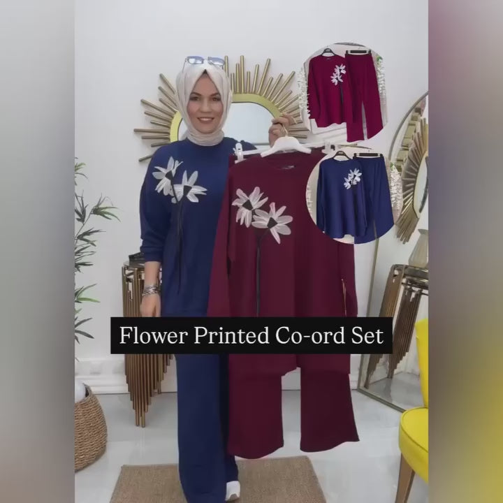 CH 481 Luxury Flower Printed Fleece Co-ord Set For Winters