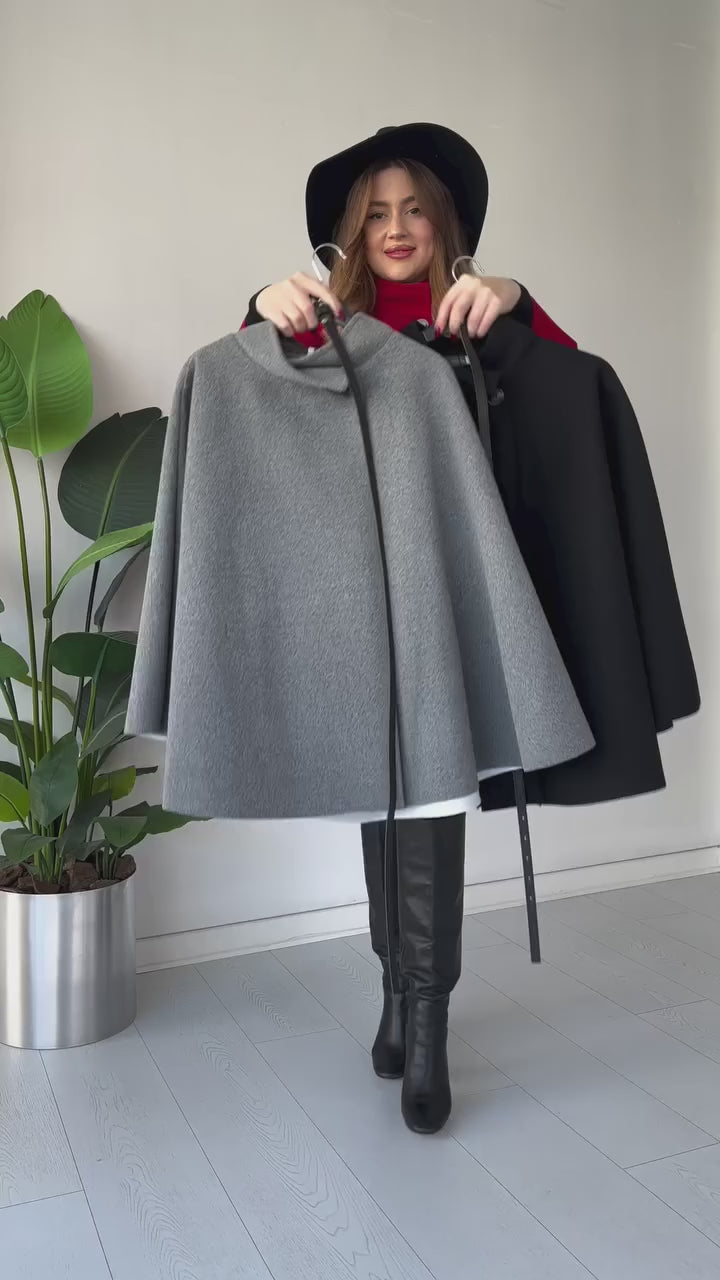 This short cap shawl features a unique new design and includes a belt for added style. Stay warm and trendy with this versatile and fashionable piece. Perfect for any occasion, it's a must-have for your wardrobe.