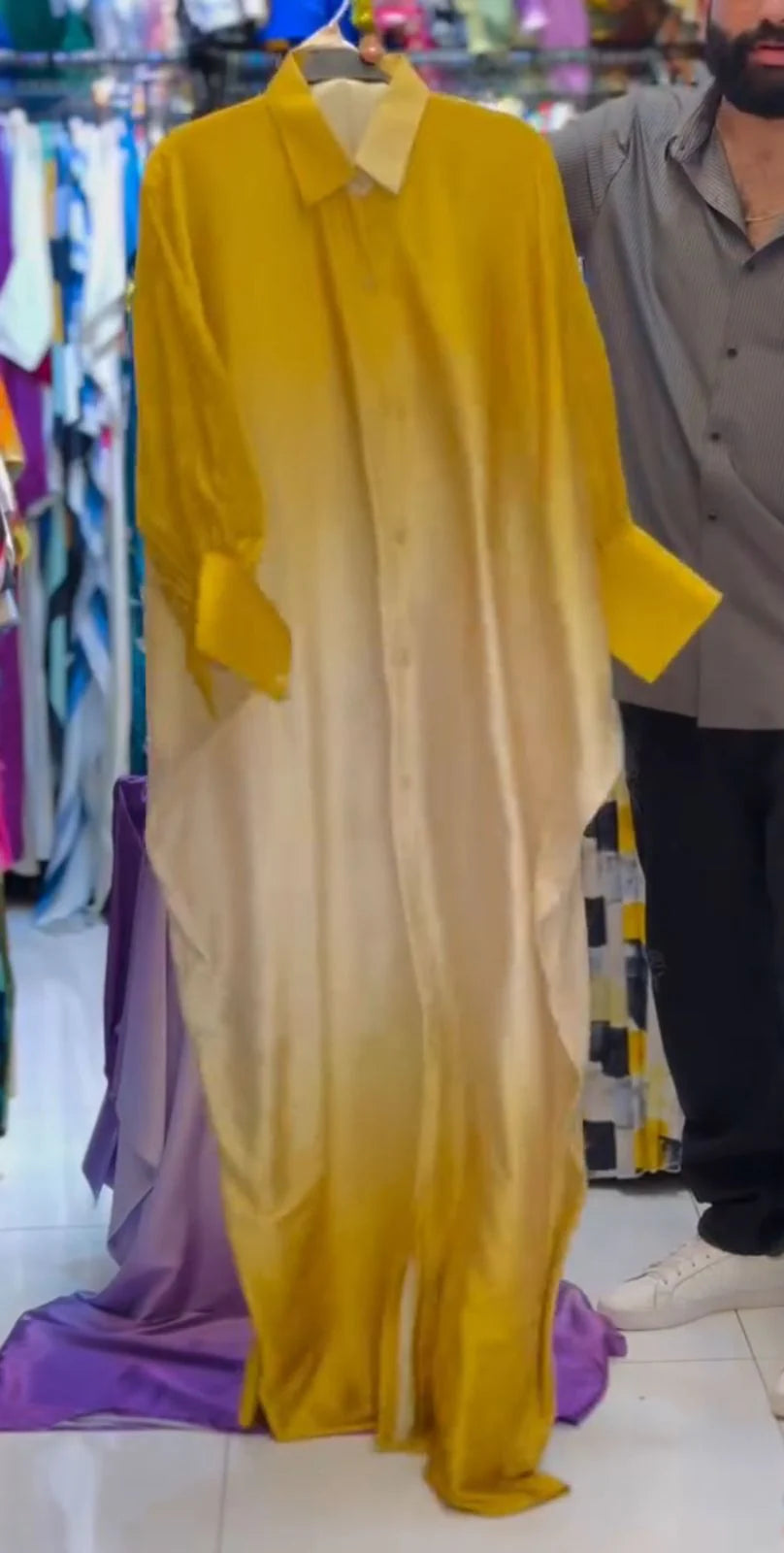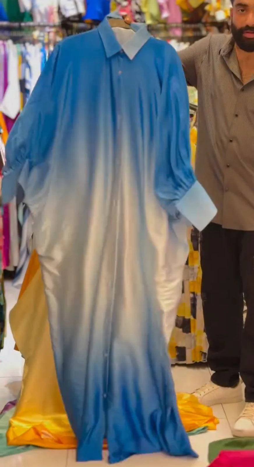 Elevate your wardrobe with the CH 532 Collar Shaded Style Kaftaan Dress from Cc Made with silk stuff and featuring a unique collar design, this dress combines luxurious comfort with a stylish, modern flair. Perfect for any occasion, this dress is sure to make a statement.