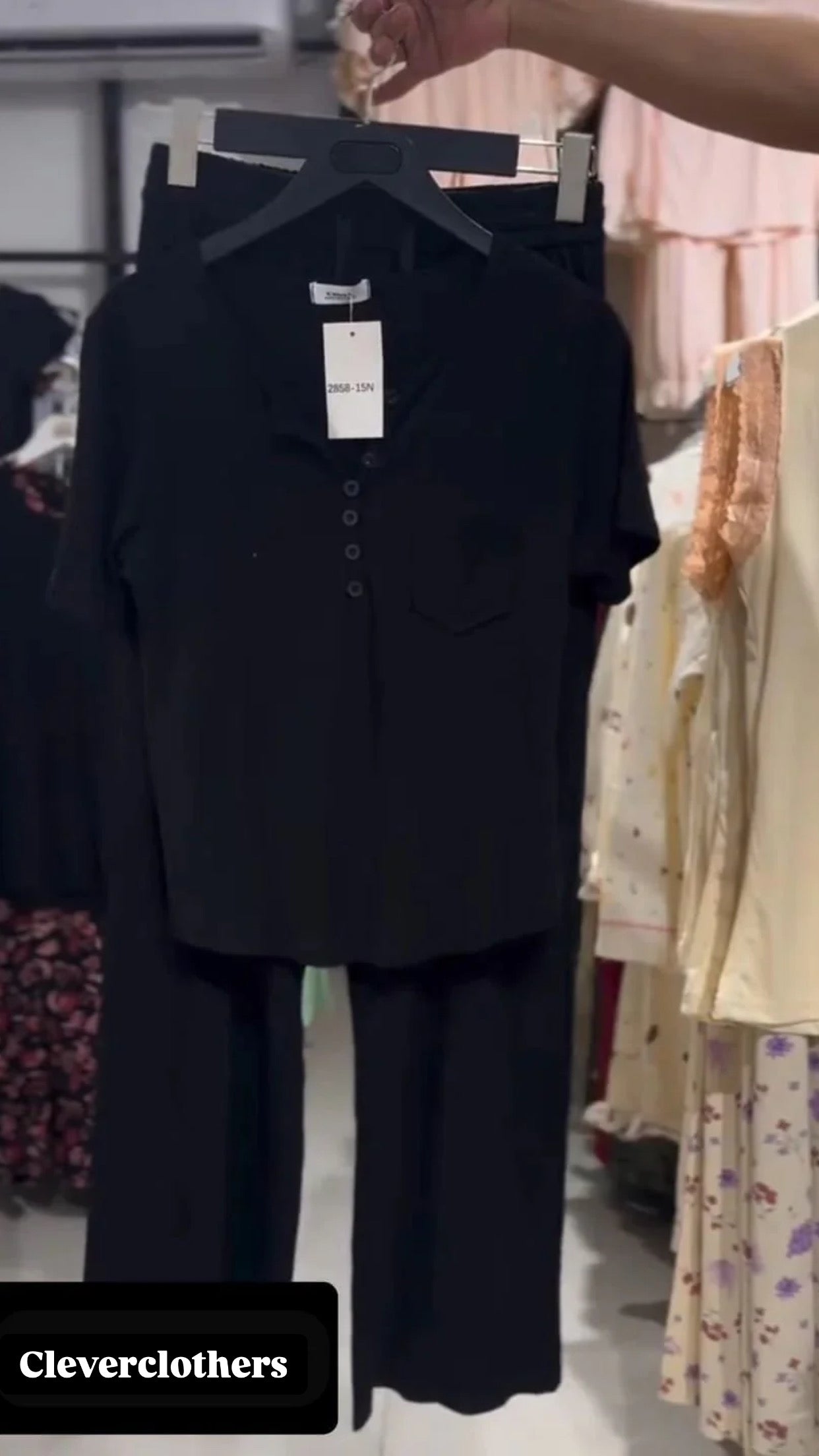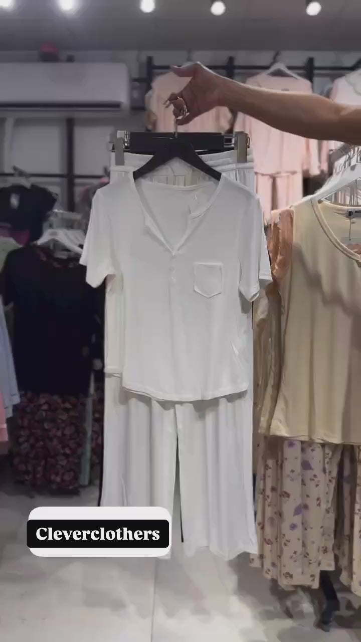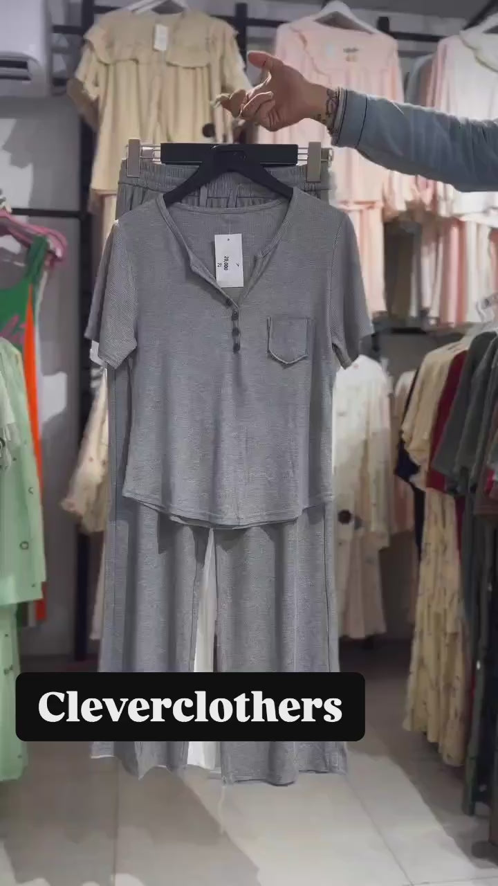 CH-538 2 Pcs Button Casual Top With Straight Trouser