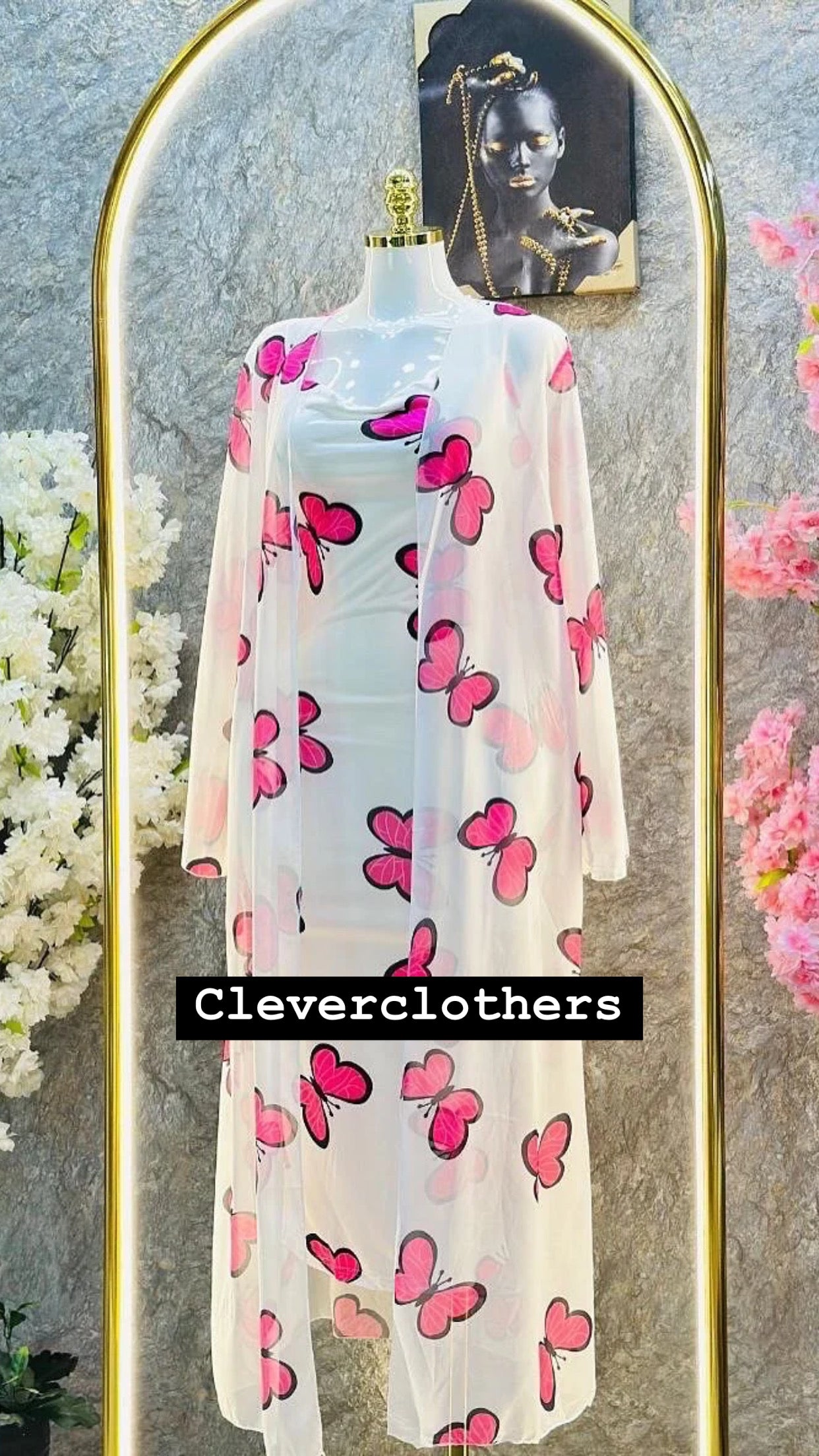 This elegant 2-piece butterly printed dress features a delicate chiffon upper fabric that offers a graceful, flowing silhouette. The inner dress is crafted from high-quality export silk, ensuring comfort and breathability throughout your event. Perfectly combining style and comfort, this dress is an excellent choice for sophisticated occasions.