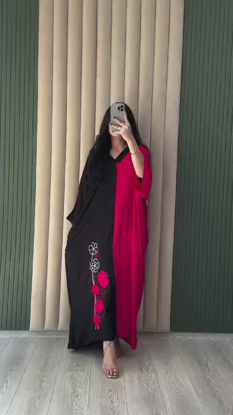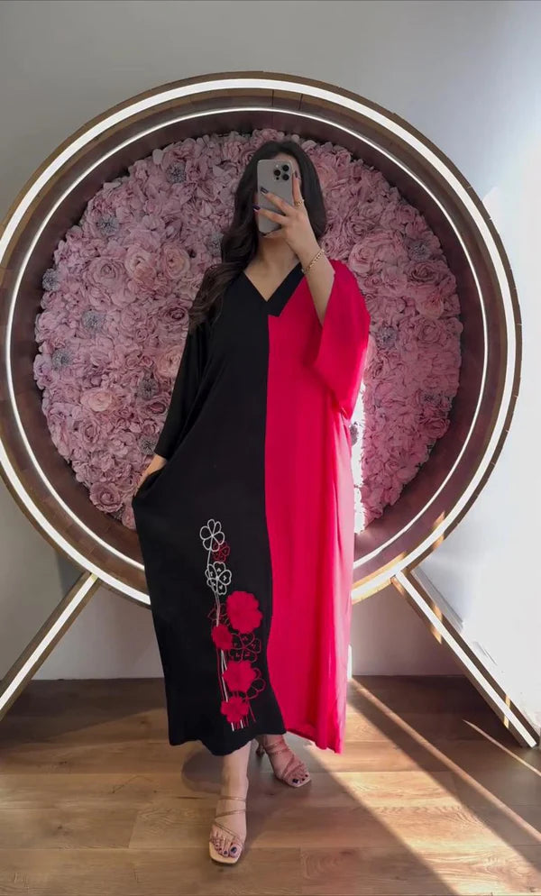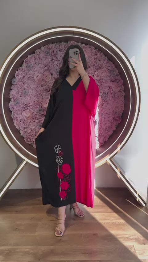 CH 418 Flower Printed Panel Kaftaan
