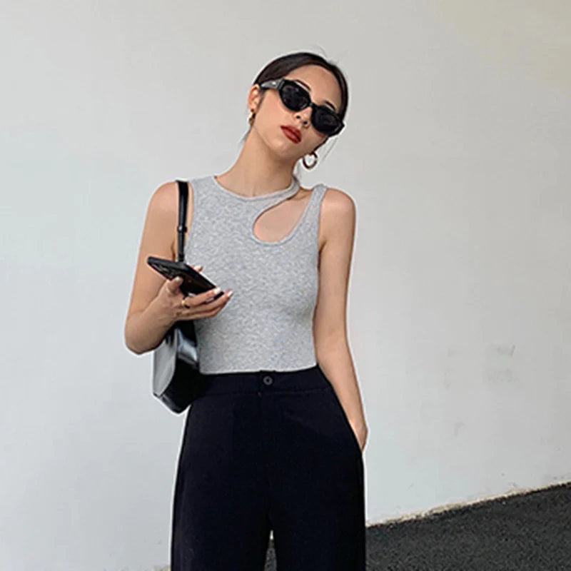 Women Casual Cut Out Camiseta Slim Fit Sleeveless Top CH # 339